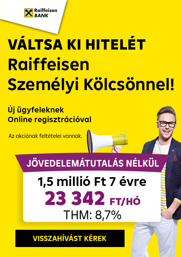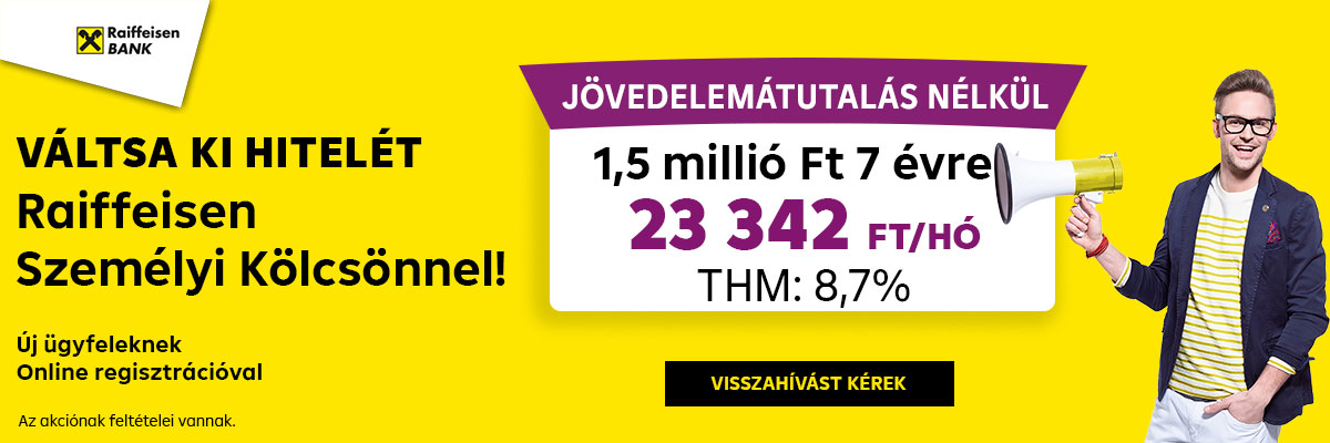 Új Ügyfél Jövedelem250 online akcióval: kölcsönösszeg: 3.000.000 Ft; futamidő: 60 hó; hitelkamat mértéke: 7,95% a futamidő végéig; hitelkamat típusa: rögzített; THM: 8,7%; fizetendő teljes összeg a futamidő alatt: 3.675.445 Ft; hitel teljes díja: 675.445 Ft, hitelbírálati díj: 30.000 Ft, kamat összege: 645.445 Ft; havi törlesztőrészlet összege: 60.757 Ft. A feltételek változása a feltüntetett adatokat módosítja.